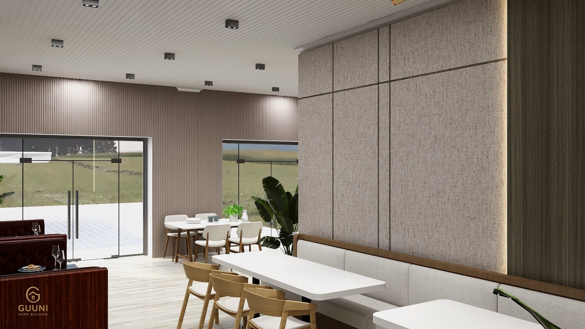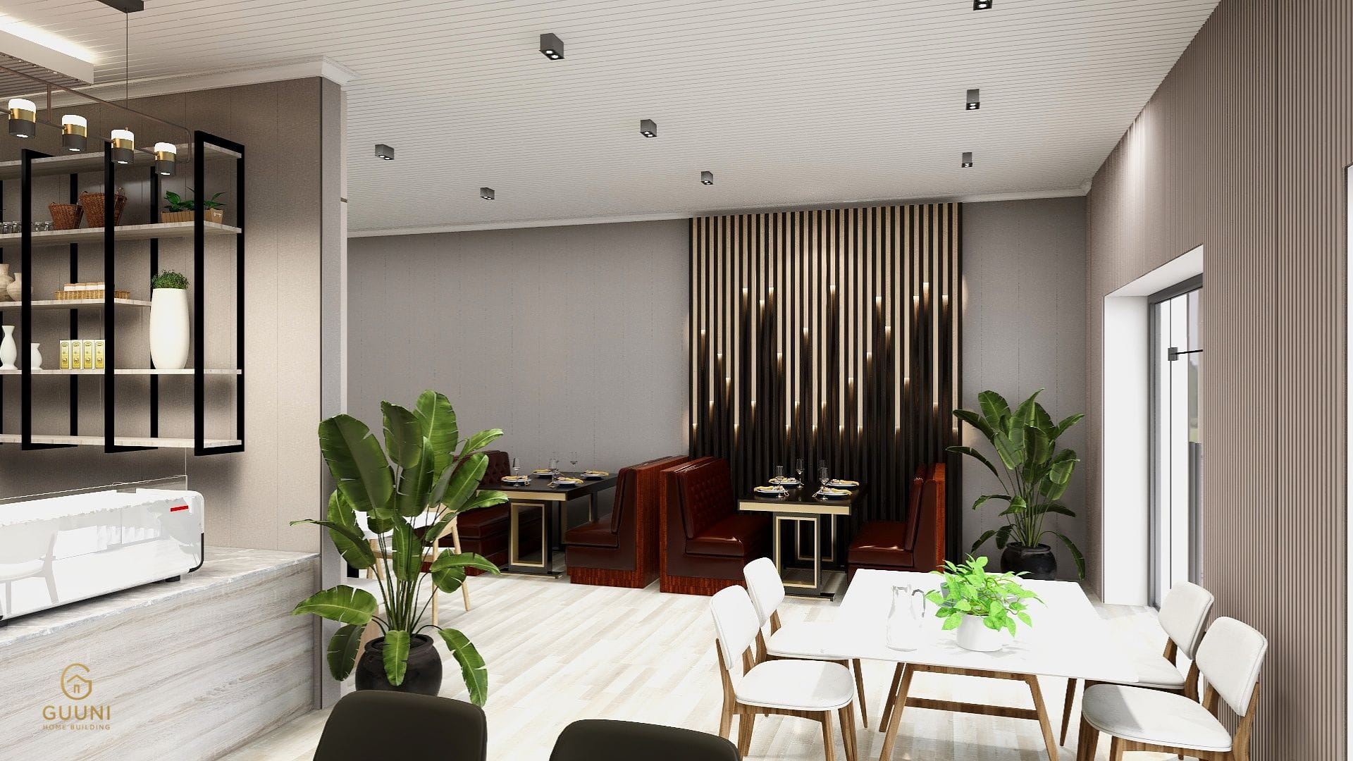 Lantai 2 dirancang sebagai ruang yang menggabungkan dua dunia: Hospitality (café & VIP room), Professional service (ruang notaris). Guuni Home Building menata lantai ini agar tetap terasa harmonis, tidak saling mengganggu, dan tetap menunjukkan kualitas pengerjaan yang rapi, bersih, dan premium.