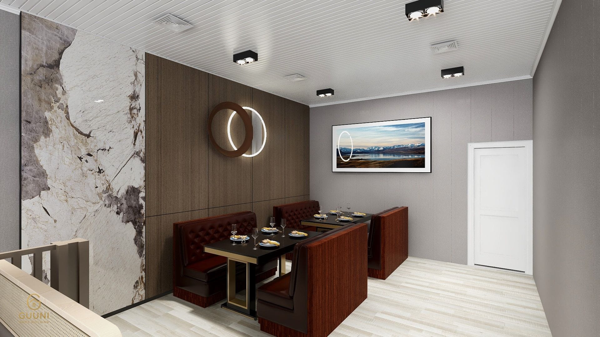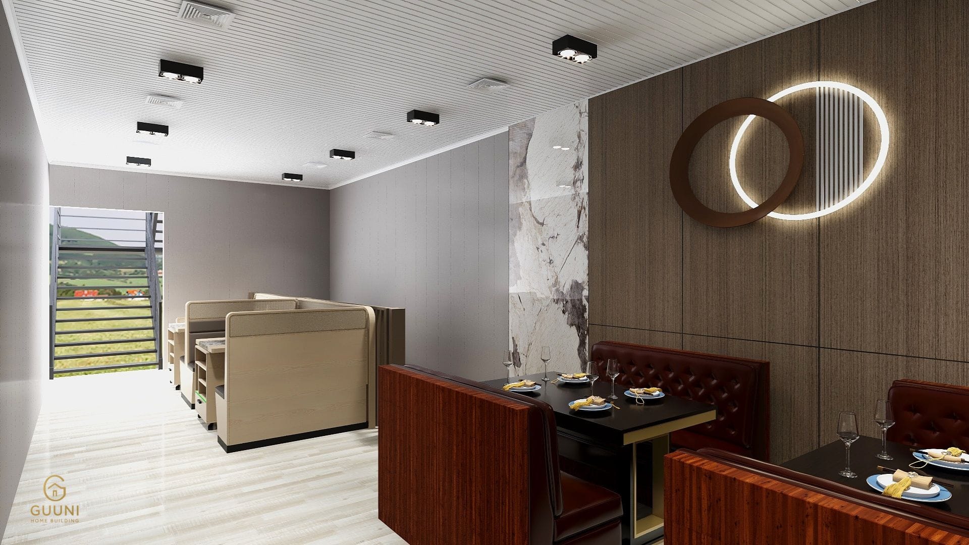 “Material yang dipilih Guuni berkualitas tinggi dan finishing‑nya sangat bersih. Ruang café dan VIP room tampil elegan, sementara ruang notaris tetap formal dan eksklusif.”